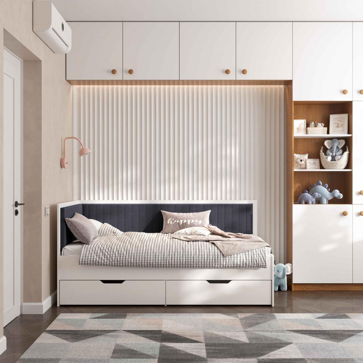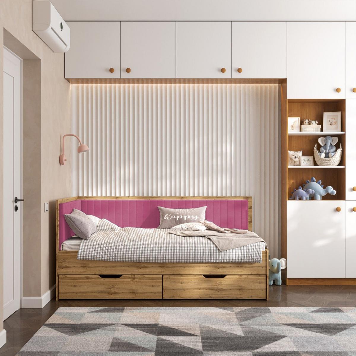 *** Доступні зразки тканини в галереї. Велюр виробника Arteks серія Lounge. Колір корпусу ліжка - білий або дуб Тахо