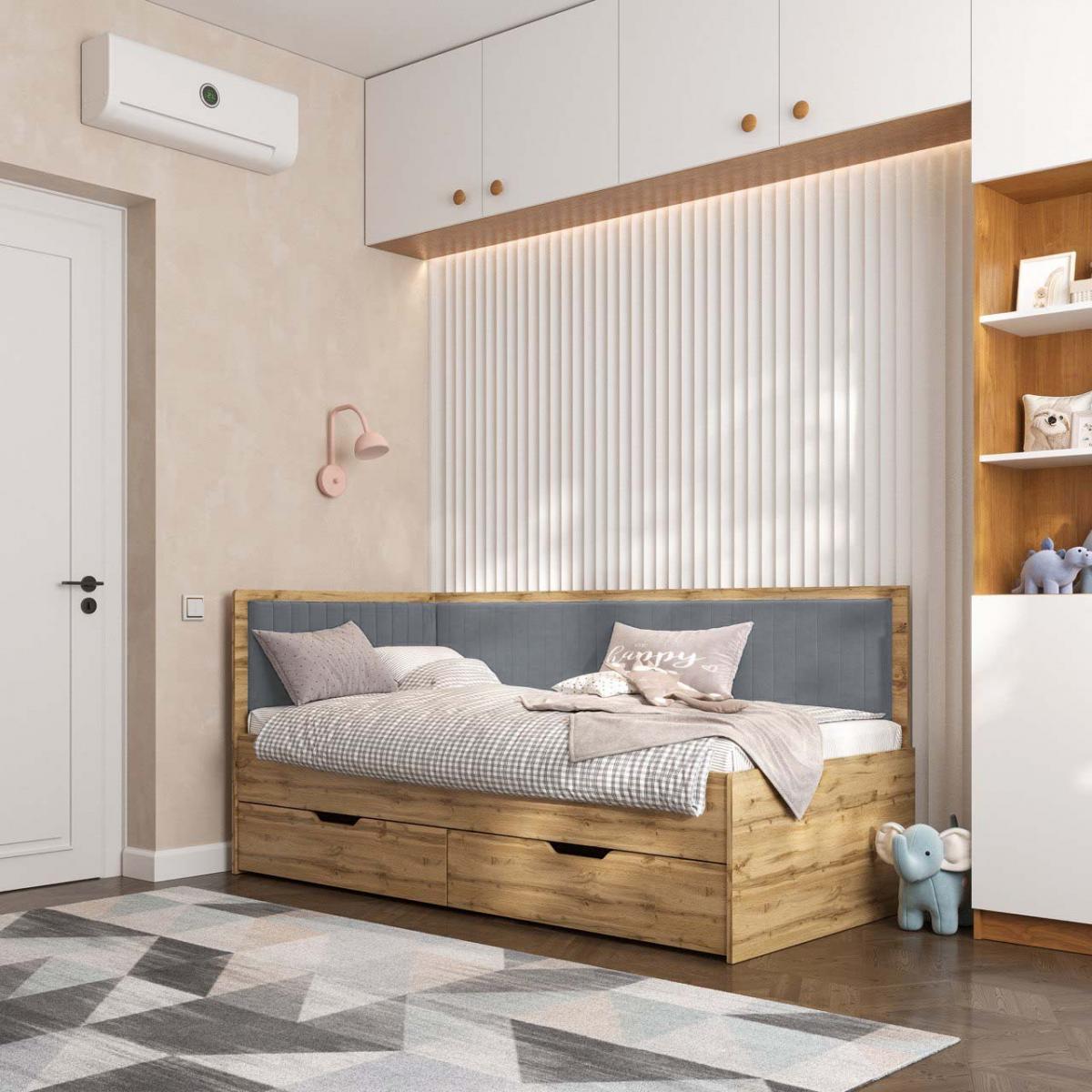 В ліжку присутній ящик на виїзних колесах. Спальне місце - ортопедичні букові ламелі з кроком 50 мм.