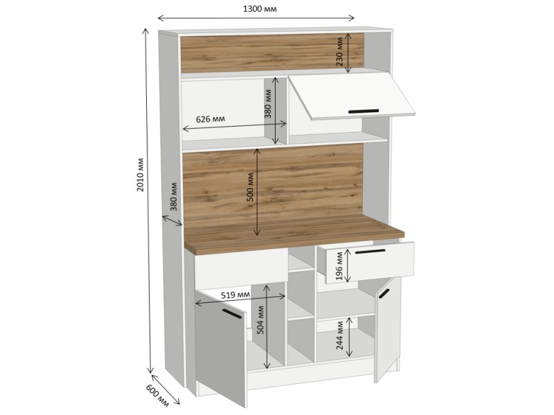 * Є можливість встановлення мийки та плити на 2 комфорки. Також є місце під витяжку.