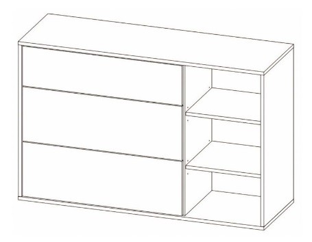Ручки: отсутствуют. Их роль выполняют фрезерованные на фасаде выемки под углом 45 градусов.