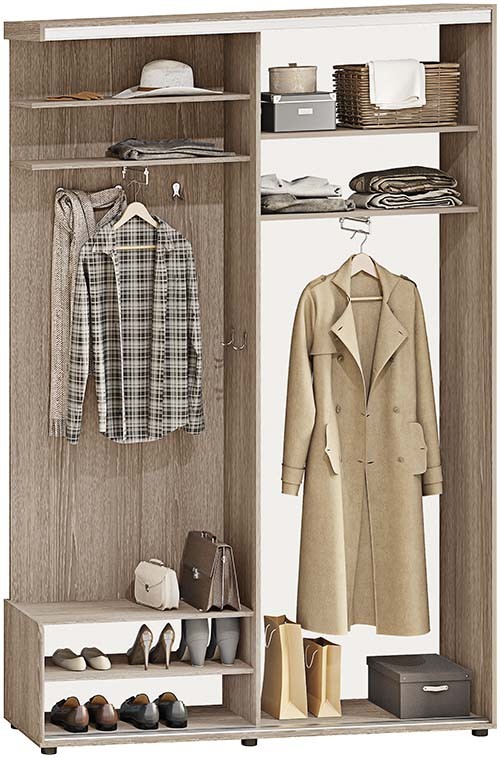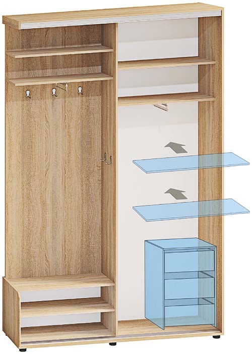 Базовая цена включает в себя корпус из ДСП 16 мм, комплектацию дверей из профиля цвет серебро, наполнение дверей: ДСП 16 мм.